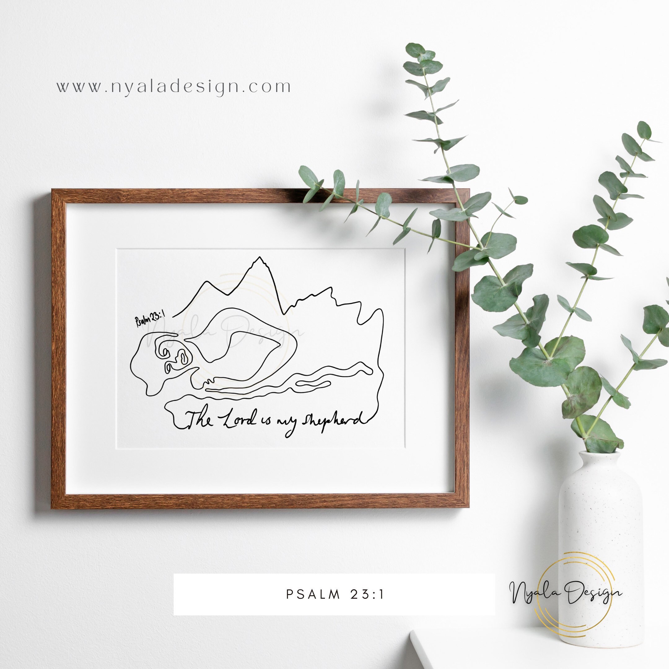 Psalms 23 Bible Verse Wall Art The LORD is my Shepherd Printable Digital Download Christian Art Print Nursery Decor.